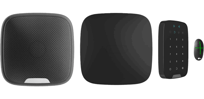 Central Hub avec Ethernet et cartes SIM (4G) Sirènes puissantes intérieures et extérieures Claviers tactiles et télécommandes